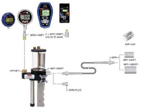 标准配置:T-620H泵,MPF-1/8MPT(已安装在手泵侧面),MPF-1/4FPT,1M连接管MPH-1,MPM-PLUG堵头。