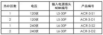 - 每区1根 10英尺(3m) 热补仪输入电源线