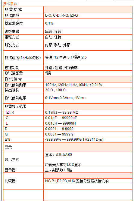 ■ TH2810D型LCR数字电桥是本公司研制的低频元件测量的换代产品, 其中应用多项元件测量的技术,大字符LCD显示,采用SMT贴片工艺,操作方便,外形美观。可满足生产线质量保证、进货检验及自动化生产的需要。 TH2810D为常州同惠推出的一款低价LCR数字电桥,在夹具方面采用了TH26004-1四端开尔文测试电缆加TH26001A 四端测试夹具以及短路片,精度为0.2%,内阻30/100欧姆。此外还有丰富的接口,RS-232和HANDLER接口等,可以连接电脑通讯及自动化测试。?同惠TH2810D LCR数字电桥?