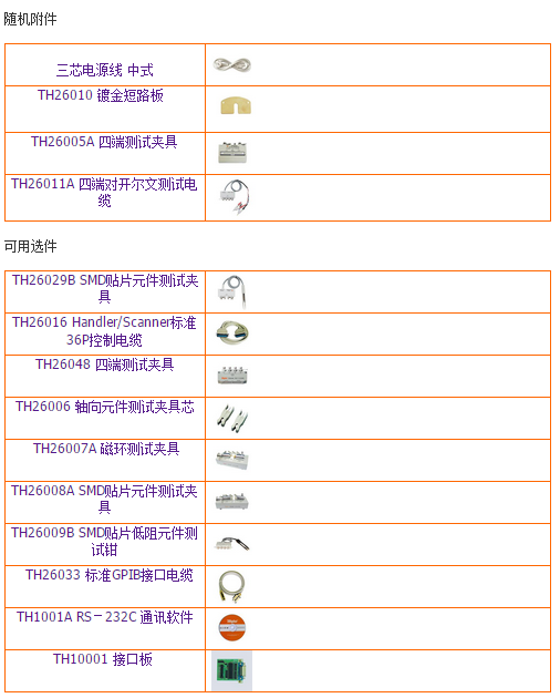 测试频率 | TH2816B | 50Hz-200kHz,共37个典型频点 | |