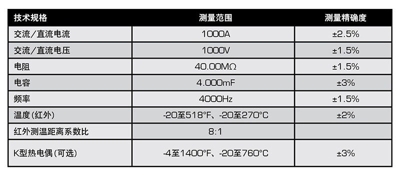 可以快速、安全且地完成大功率设备和复杂机械的交流/直流测量(高达1000A或者1000V)。